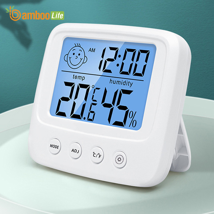 Cha mẹ không nên để điều hòa quá lạnh và khô, nhiệt độ chênh lệch với bên ngoài không dưới 10 độ C. Mức độ ẩm phù hợp từ 40 – 60%. Các mẹ nên đặt trong phòng con một chiếc nhiệt ẩm kế để đo nhiệt độ và độ ẩm hàng ngày. Nhiệt ẩm kế điện tử của Bamboo Life có thiết kế màu trắng xinh xắn, tiện dụng với nhiều thông số kỹ thuật, sản phẩm có độ chính xác cao, độ sai số thấp phù hợp để mẹ chăm bé hiệu quả.