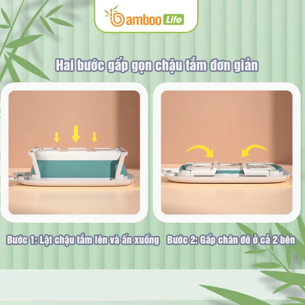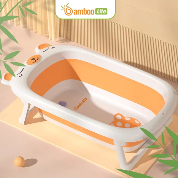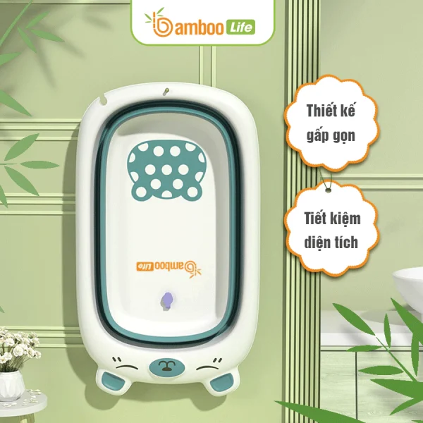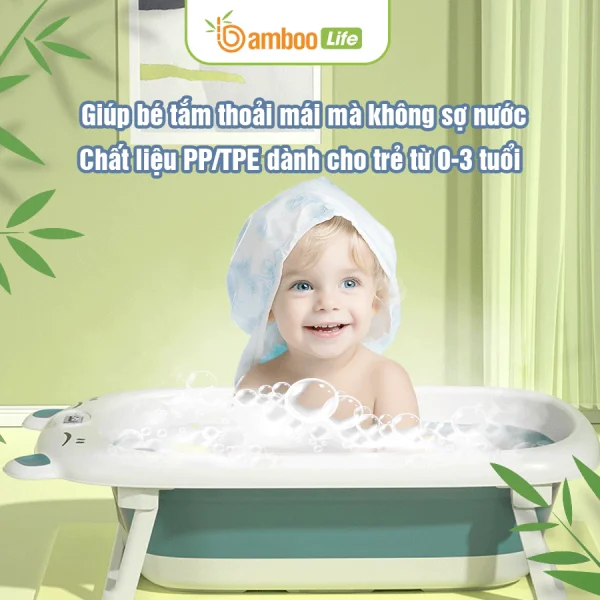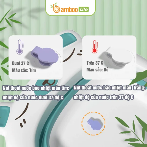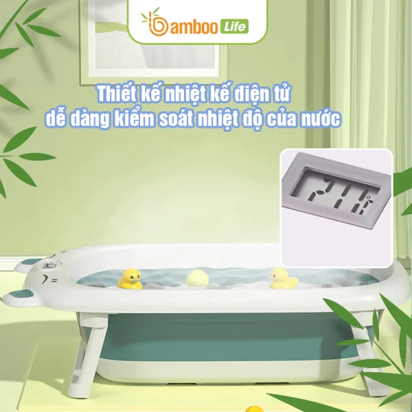 Chậu tắm cho bé sơ sinh Bamboo Life thau tắm bé gấp gọn có cảm biến nhiệt độ tiện dụng cho mẹ