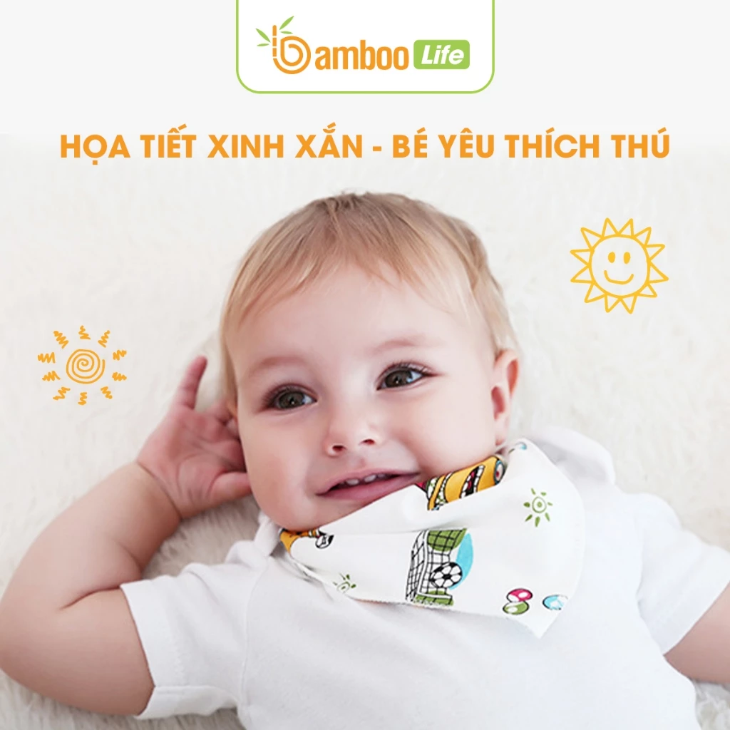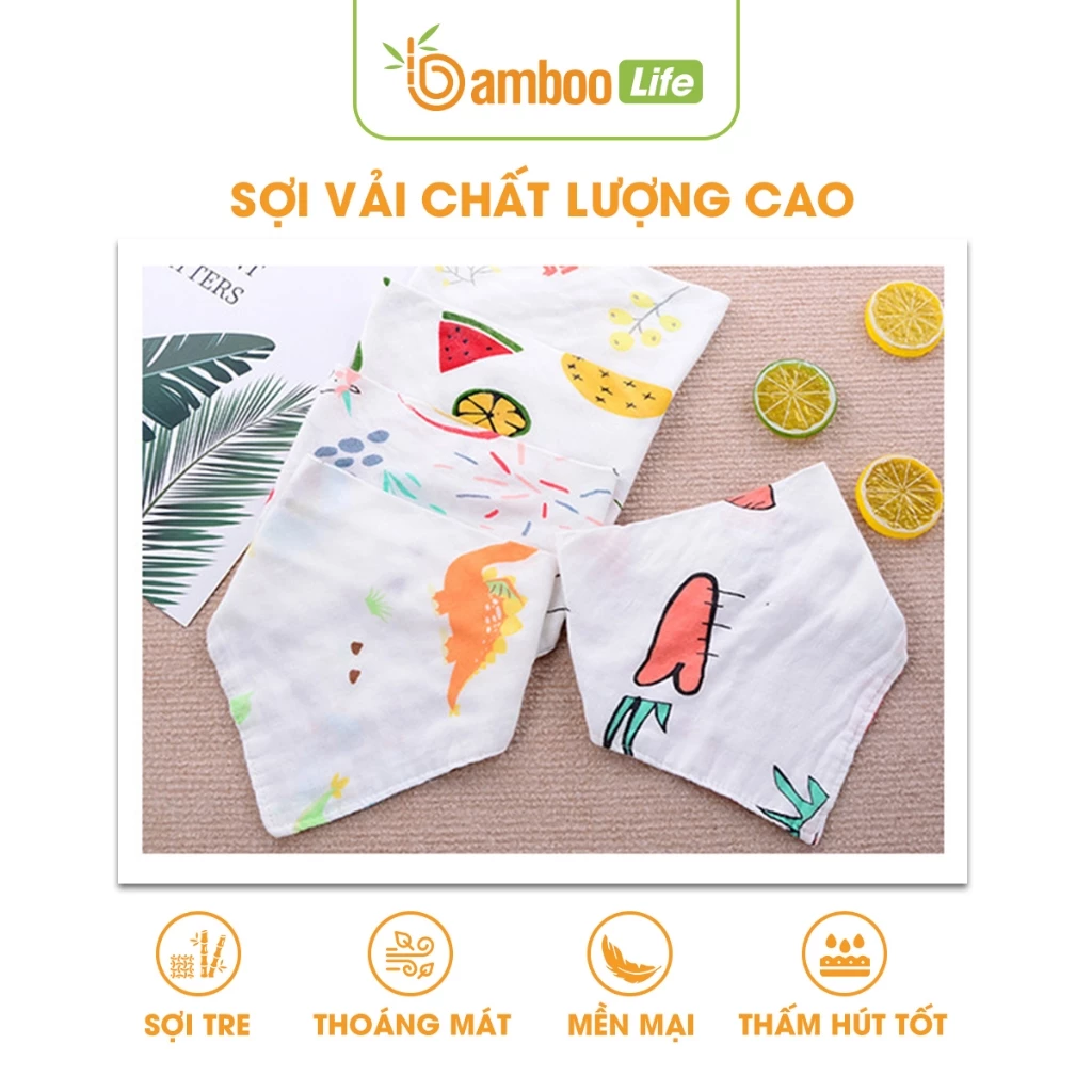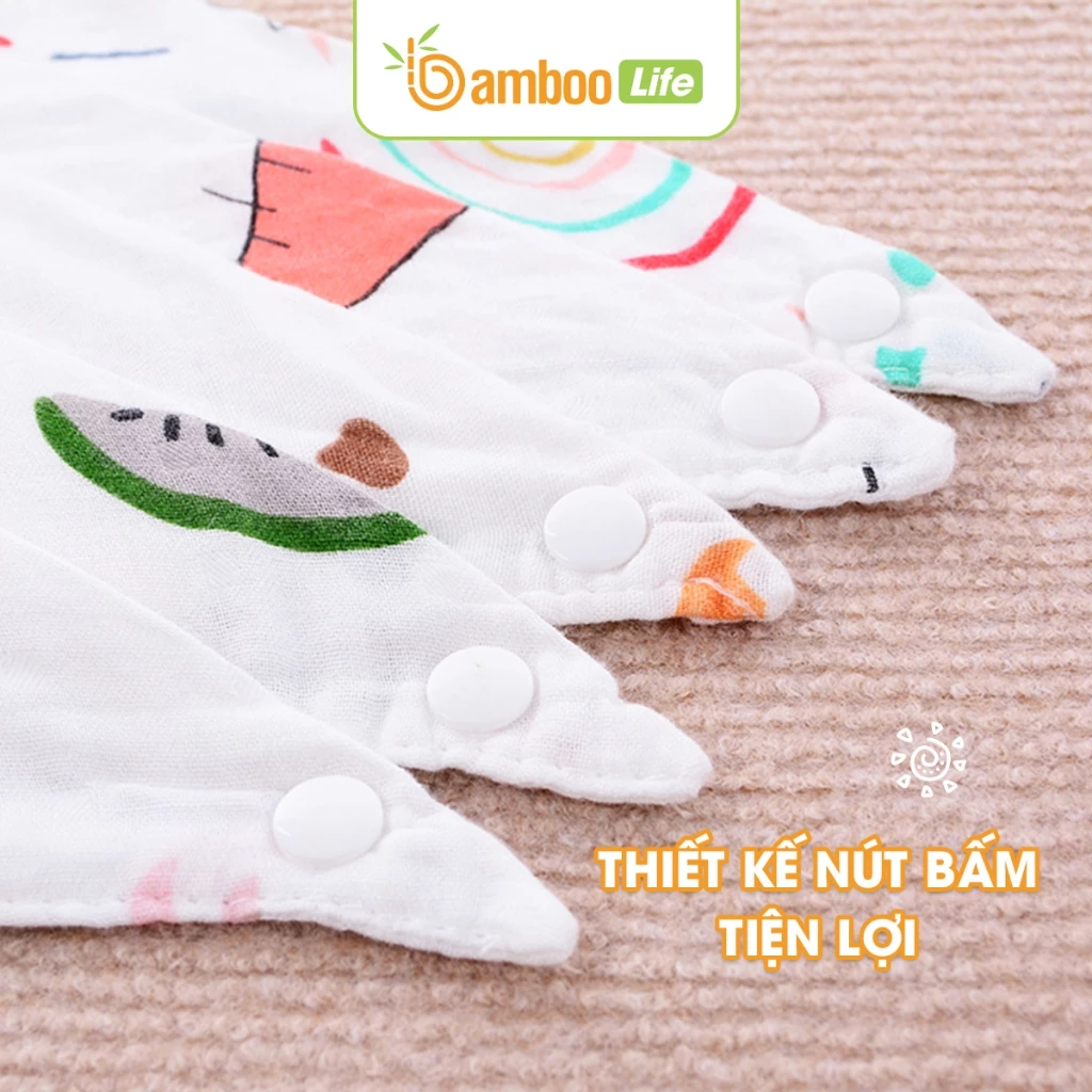 Khăn yếm tam giác cho bé sợi tre Bamboo Life hộp 5 chiếc 6 lớp BL138 quấn cổ mềm mịn có cúc bấm
