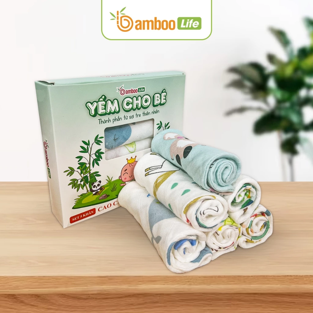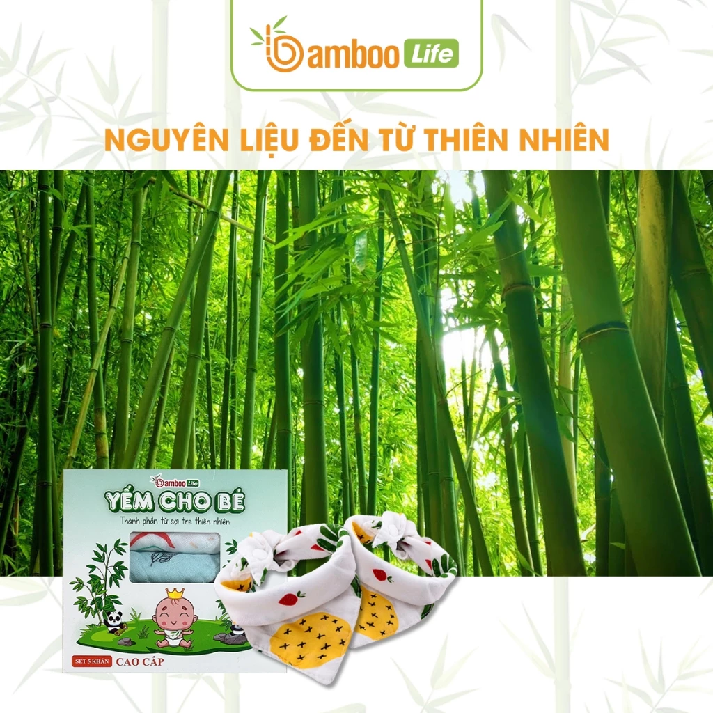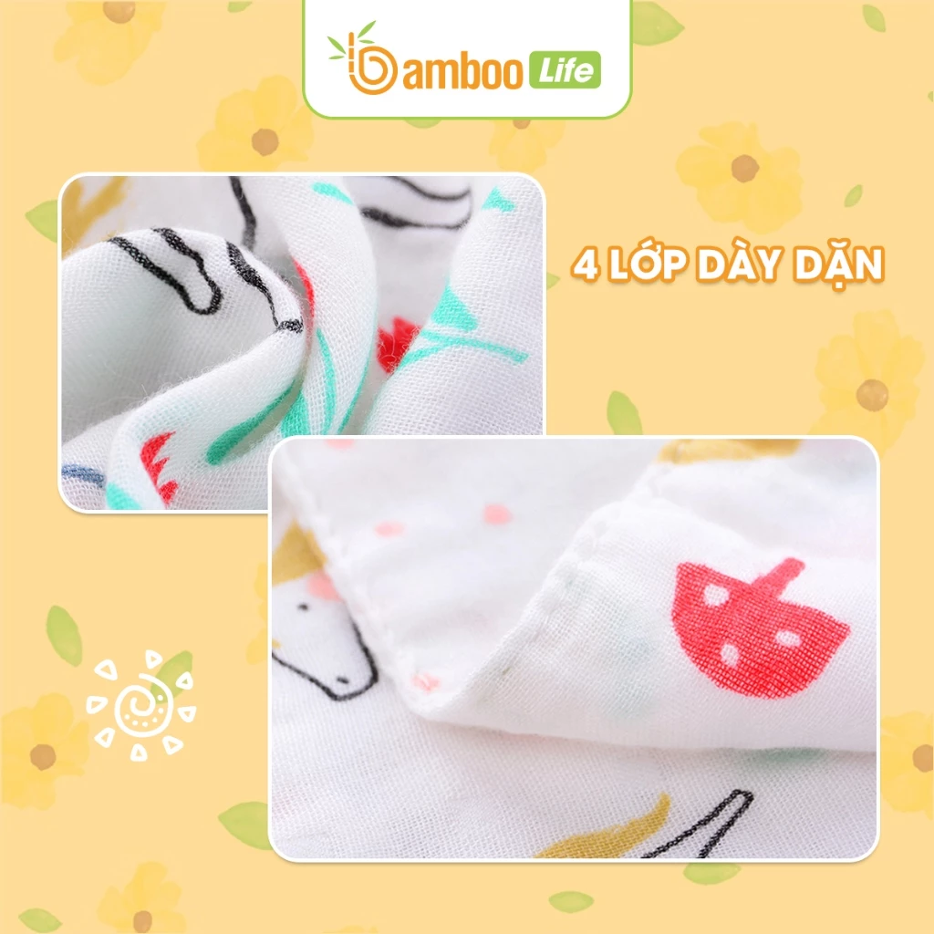 Khăn yếm tam giác cho bé sợi tre Bamboo Life hộp 5 chiếc 6 lớp BL138 quấn cổ mềm mịn có cúc bấm