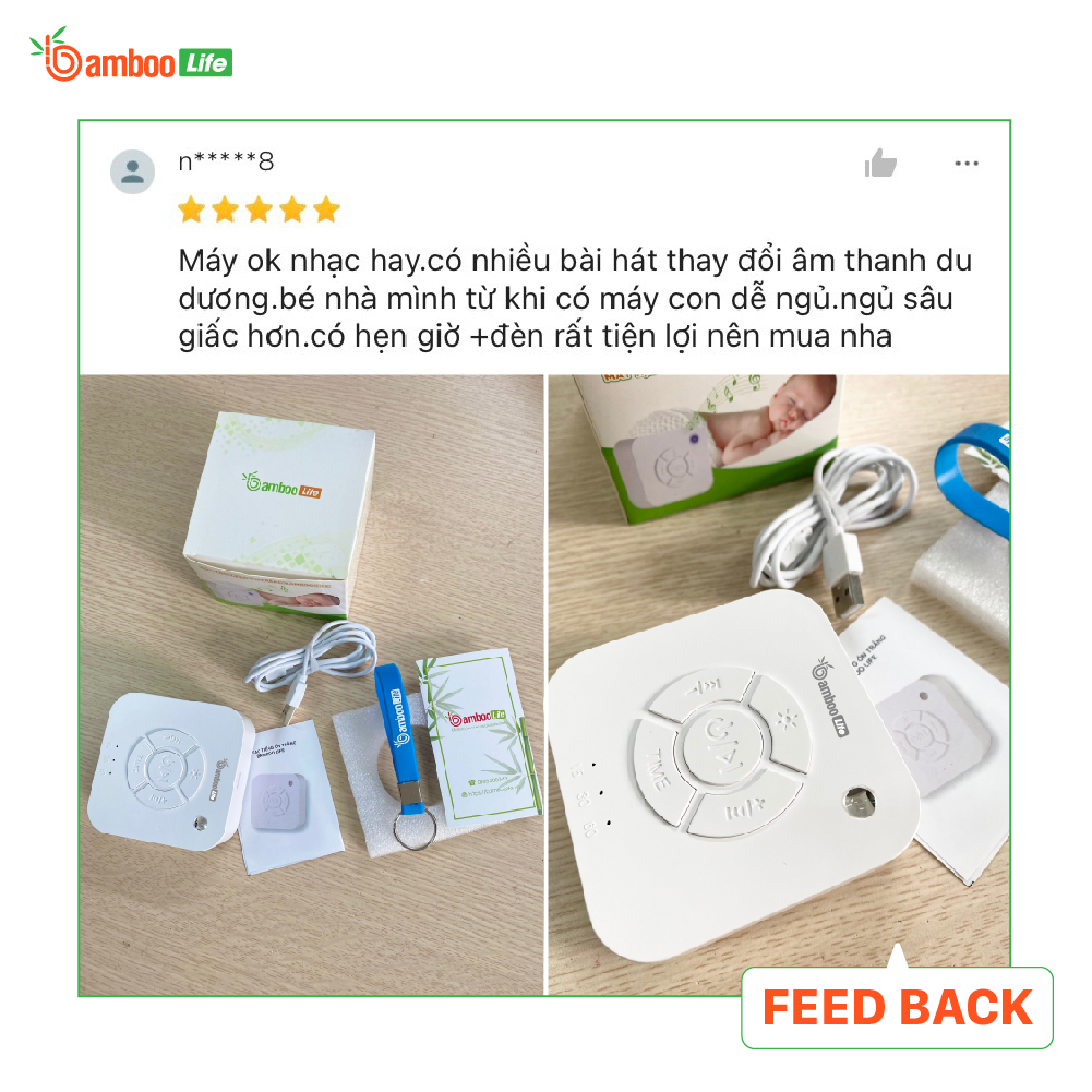 Máy tạo tiếng ồn trắng Bamboo Life là sản phẩm được nhiều gia đình lựa chọn để chăm sóc giấc ngủ cho bé yêu và cả gia đình. Sản phẩm không chỉ giúp bé ngủ ngon, ngủ sâu mà còn mang lại sự tiện lợi, dễ dàng sử dụng cho ba mẹ trong mọi hoàn cảnh.